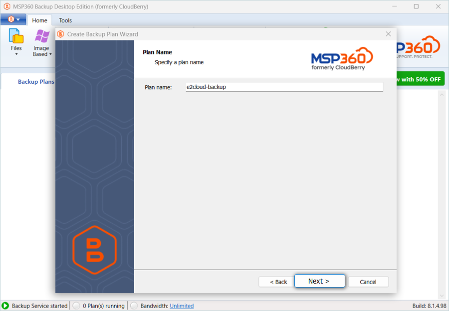 - Click Local to Cloud and then click Next in the Create Backup Plan Wizard.
