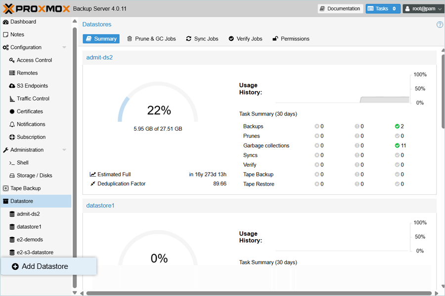 - Select Datastore in the Dashboard on the left-side menu and click Add Datastore.