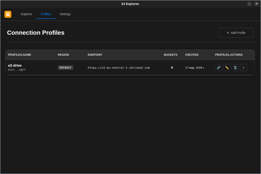 The created profile gets listed under the Profiles tab as a connection profile.