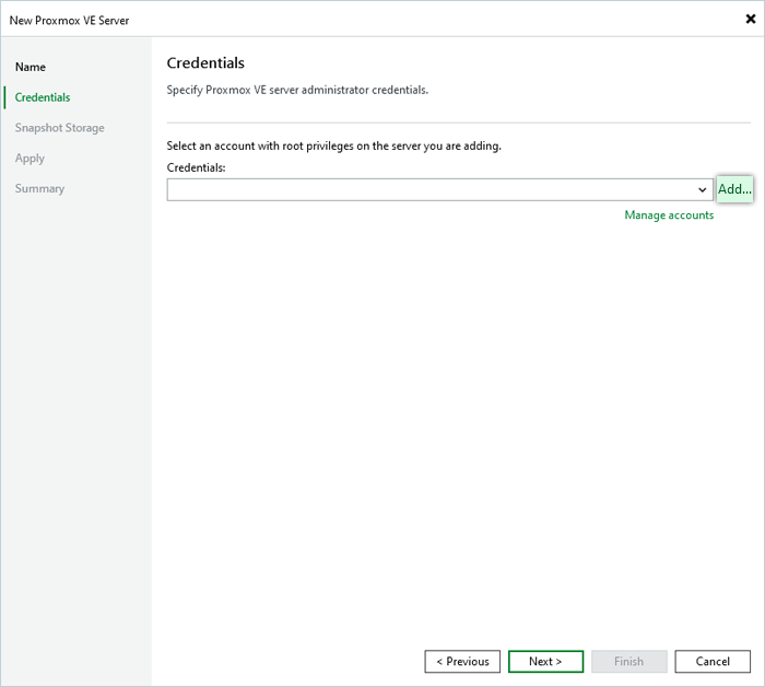 - Under Credentials, click Add to add your ProxMox Credentials.