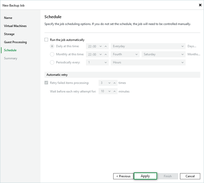 - In the New Backup Job window, enter a name for your Backup Job and click Next.
